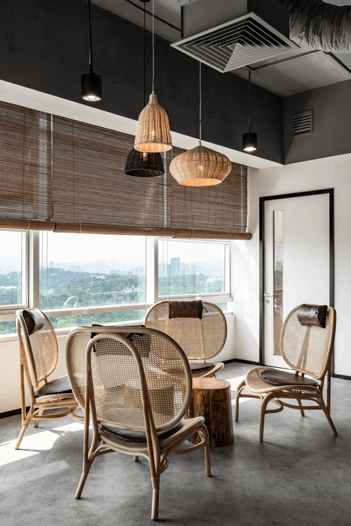 Conference rooms are named after traditional childhood games like "Guli" and "Batuh Seremban," emphasizing inclusivity and cooperation during important meetings. The workspace features flexible arrangements, symbolizing the versatility and adaptability of Malaysians. Natural light floods the space, connecting the indoors with the outside world, representing the openness of the culture.